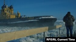 Если на горизонте появляется и начинает гудеть баржа или ледокол, "дорога жизни" останавливается. После того, как пройдет пароход, обычно остается десятиметровая полынья.