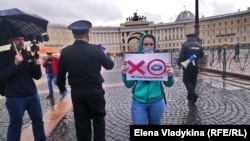 В Петербурге на Дворцовой площади состоялась акция против принятия поправок в Конституцию. Жители города требовали отменить обнуление сроков Владимира Путина и не переписывать Основной закон, передает корреспондент Север.Реалии.