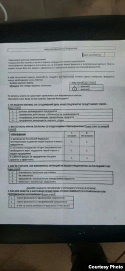 "Анкеты не именные. Но анкетирование проходит во всех службах", — объяснил он и подчеркнул, что сотрудников не принуждают заполнять бумаги.