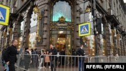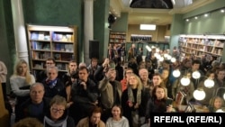 Жители Петербурга собрались около здания Дома книги еще до его открытия, образовалась большая очередь, которая тянулась до Малой Конюшенной улицы.