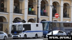 В Петербурге в районе станции метро Гостиный двор стоят автомобили полиции и автозаки, несколько патрулей, сообщает корреспондент Север.Реалии.